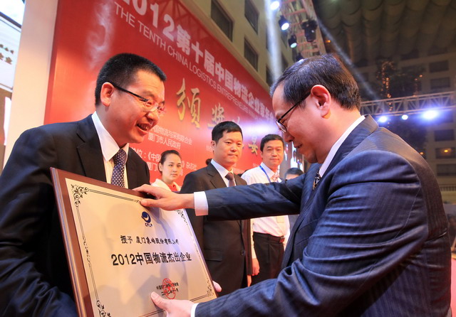 頒獎晚宴,象嶼股份獲評“2012中國物流杰出企業(yè)”,并在2012中國物流50強企業(yè)中名列第四