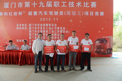 11月4日,由廈門(mén)市勞動(dòng)競(jìng)賽委員會(huì)主辦,象嶼集團(tuán)工會(huì)承辦的廈門(mén)市第十九屆職工技術(shù)比賽超重型汽車(chē)駕駛員(高級(jí)工)項(xiàng)目A類(lèi)比賽,在象嶼保稅區(qū)二期落下帷幕。來(lái)自廈門(mén)市全行業(yè)具有規(guī)模的16家港口集裝箱運(yùn)輸企業(yè)的55名高手報(bào)名參賽,代表廈門(mén)4000多名從業(yè)司機(jī)爭(zhēng)奪行業(yè)“狀元”稱(chēng)號(hào)。