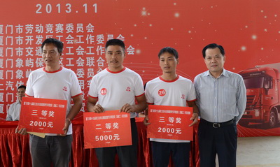 經(jīng)過(guò)理論培訓(xùn)及考試,激烈場(chǎng)地駕駛、排故障比武,最終三十多名司機(jī)贏得行業(yè)高級(jí)工證書(shū)。象嶼股份旗下太平物流車(chē)隊(duì)的參賽選手獲得較好成績(jī)。陳建立和林本來(lái)分獲四、五名,將被市勞動(dòng)競(jìng)賽委員會(huì)授予“技術(shù)能手”榮譽(yù)稱(chēng)號(hào);范思光獲得第九名,陳民獲得第十四名。據(jù)了解,獲得第一名的選手將在明年4月份獲得廈門(mén)市人民政府授予的“五.一”勞動(dòng)獎(jiǎng)?wù)隆?span lang="EN-US">