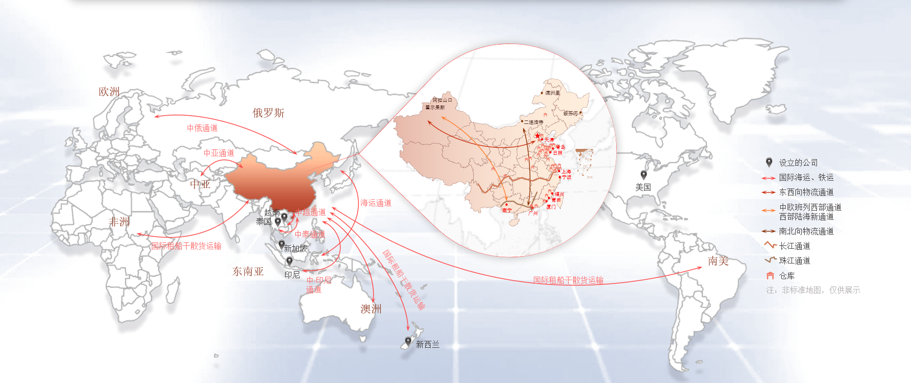 象嶼股份率先構(gòu)建了以“公、鐵、水、倉(cāng)”為支撐,覆蓋全國(guó)、連接海外的網(wǎng)絡(luò)化物流服務(wù)體系,并以“鐵、水”做干線、公路做兩端的經(jīng)營(yíng)思路,為客戶提供定制化多式聯(lián)運(yùn)解決方案,實(shí)現(xiàn)一站式門到門運(yùn)輸。目前,公司已經(jīng)打造出“北糧南運(yùn)”“鋁產(chǎn)品跨省流通”“北煤南運(yùn)”等多條多式聯(lián)運(yùn)物流線路。