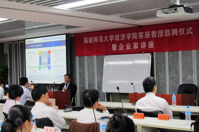 9月24日,象嶼股份總經(jīng)理鄧啟東應(yīng)邀來(lái)到福建師范大學(xué)倉(cāng)山校區(qū)參加“福建師范大學(xué)經(jīng)濟(jì)學(xué)院客座教授敦聘儀式暨企業(yè)家講座”活動(dòng)。敦聘儀式上,福建師范大學(xué)MBA教育中心常務(wù)副主任章竟代表福師大致歡迎辭,經(jīng)濟(jì)學(xué)院李建建院長(zhǎng)為鄧啟東總經(jīng)理佩戴?;詹㈩C發(fā)了聘書。